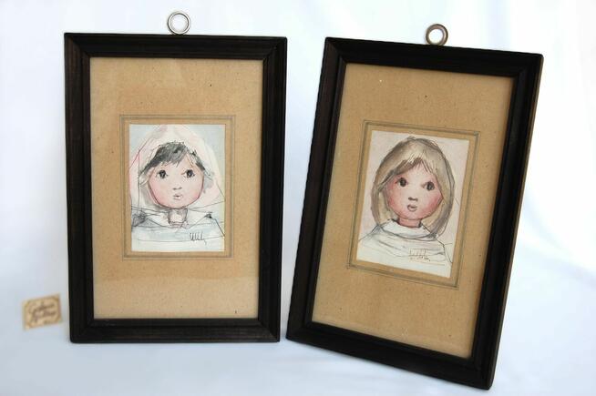 Swietlana Danuta Pawełko, Lublin, 1992 r. Dwa portrety dziewczynek - sygnowane oryginały. Technika: akwarela z rysunkiem ...